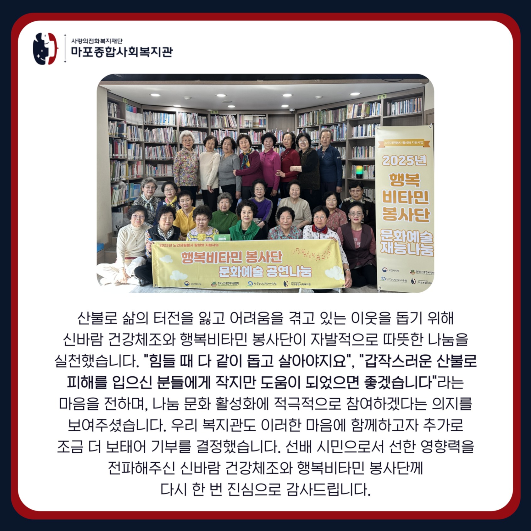 [서비스지원팀] 산불 피해 이웃을 위한 신바람 건강체조&행복비타민 봉사단 후원금 전달