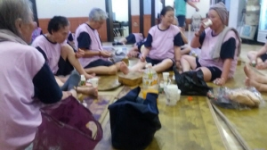 봉사자분들이 어르신들의 세신을 도와드리고 찜질방으로 이동하여 마스크팩도 해드렸습니다