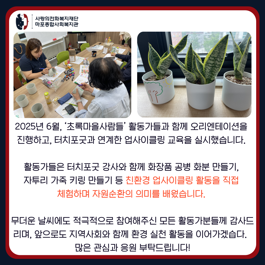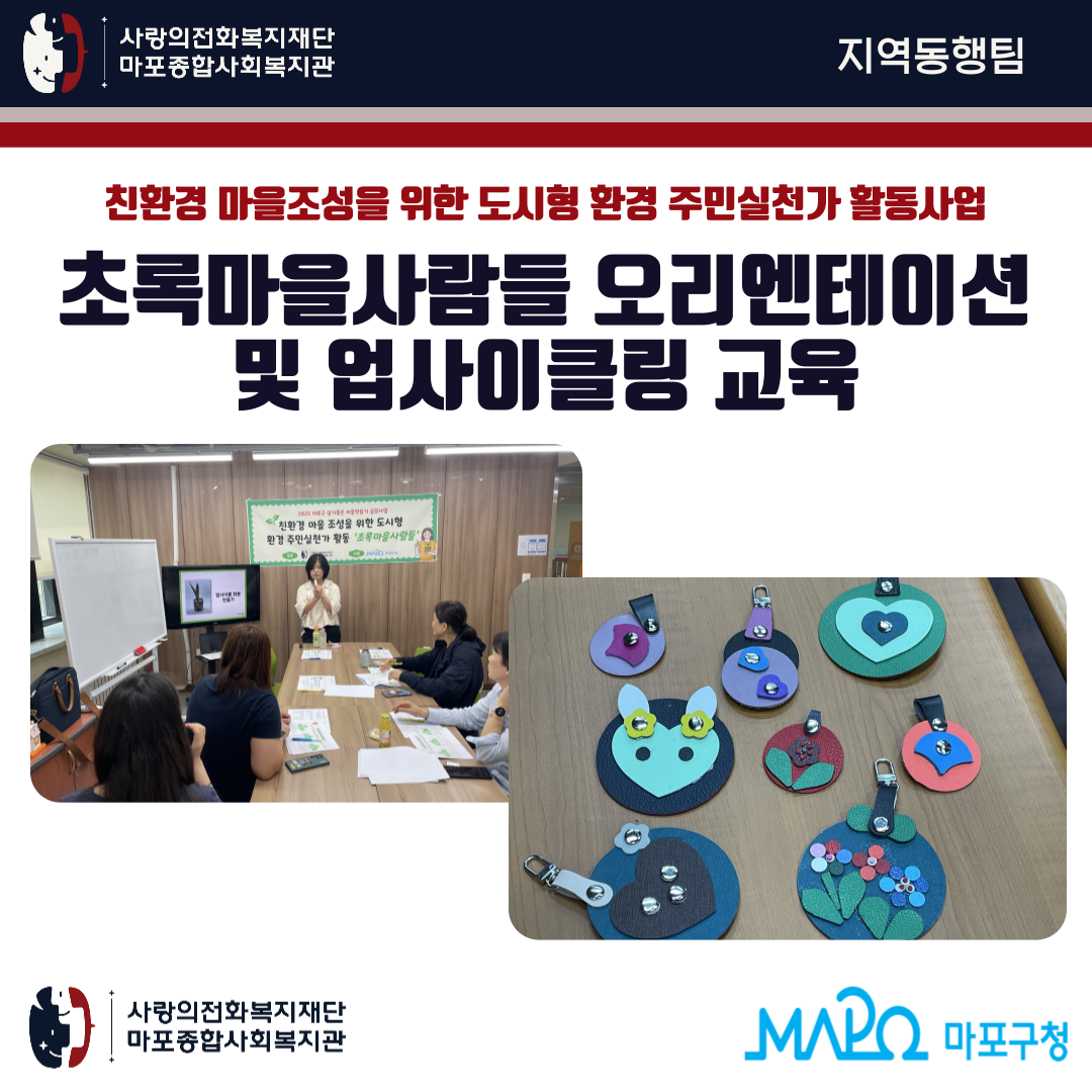 [지역동행팀]초록마을사람들 오리엔테이션 및 업사이클링 심화교육 진행