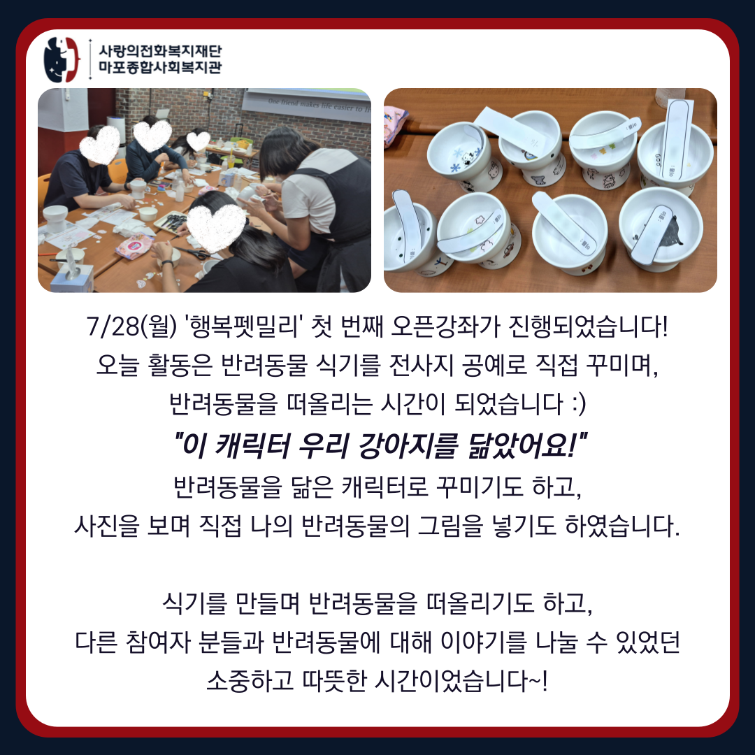 [지역동행팀] '행복펫밀리' 첫 번째 오픈강좌 <반려동물 식기 꾸미기>