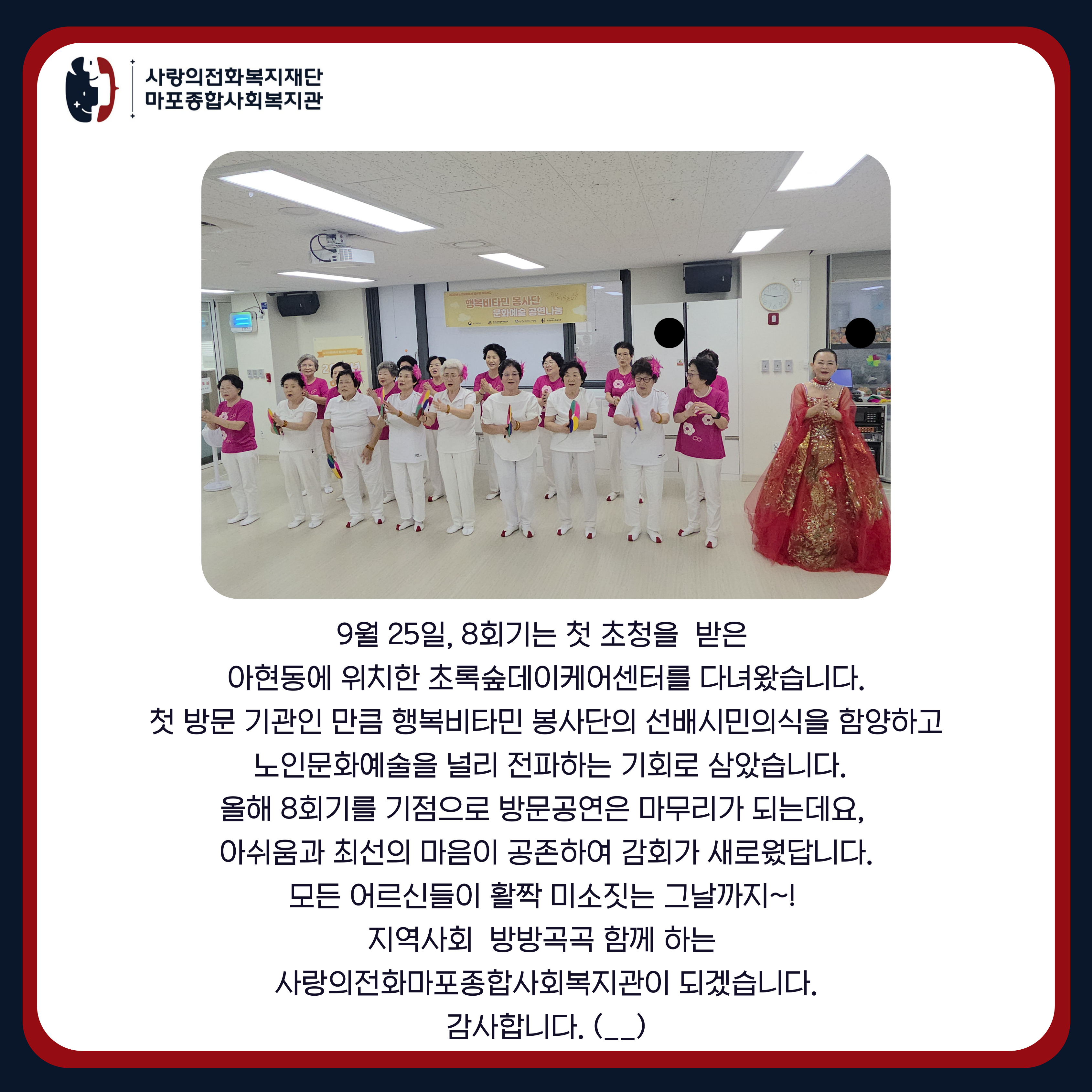 [서비스지원팀] 행복비타민 봉사단 9회기 공연 봉사활동