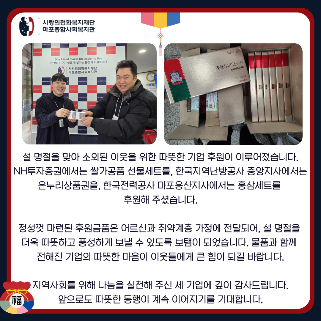 [지역동행팀]설 명절 맞이 기업 후원 나눔 활동