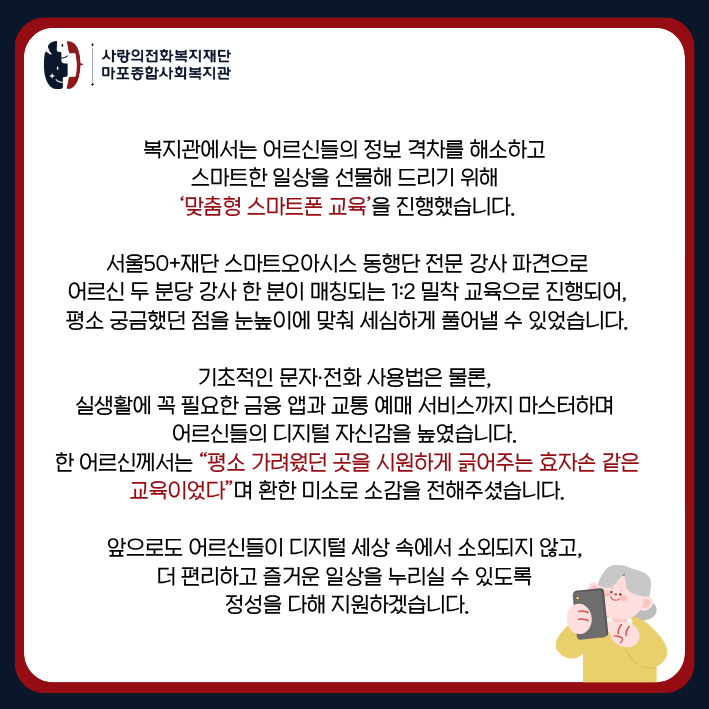 [서비스지원팀] 2026년 노인여가문화 스마트폰 교육 운영보고