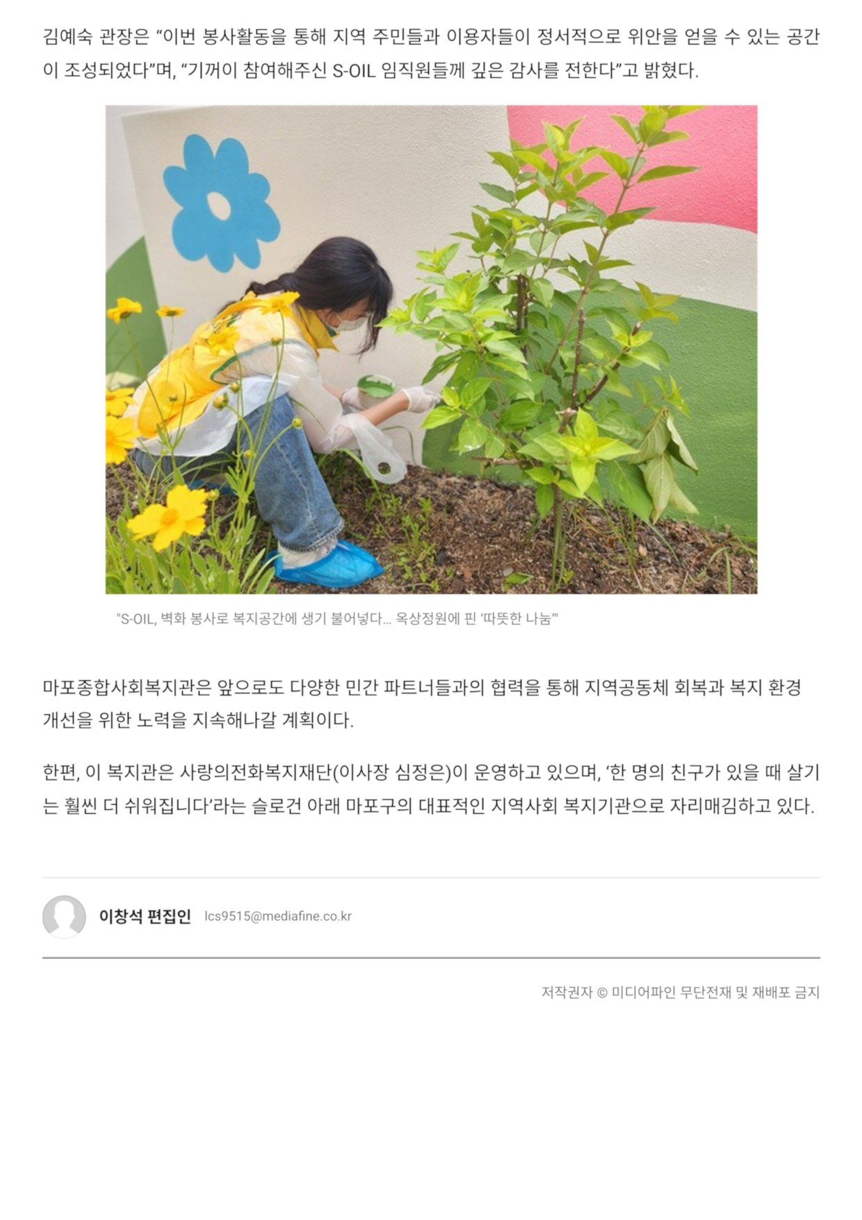 [미디어파인-25.05.31.] "S-OIL, 벽화 봉사로 복지공간에 생기 불어넣다... 옥상정원에 핀 '따뜻한 나눔'"