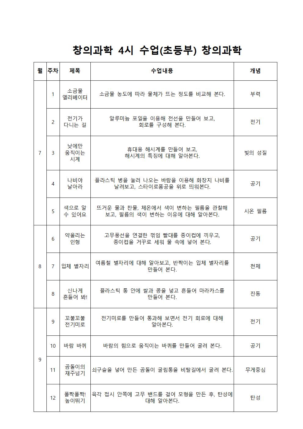 * 창의과학 수업은 수강생 연령에 맞춰 수업 내용 변경될 수 있습니다.