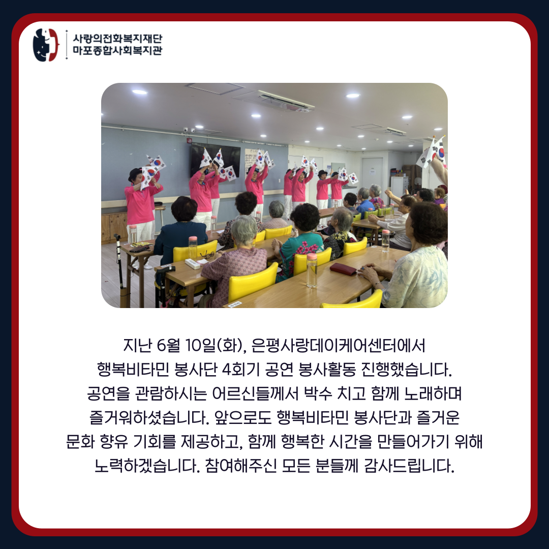 [서비스지원팀] 행복비타민 봉사단 4회기 공연 봉사활동