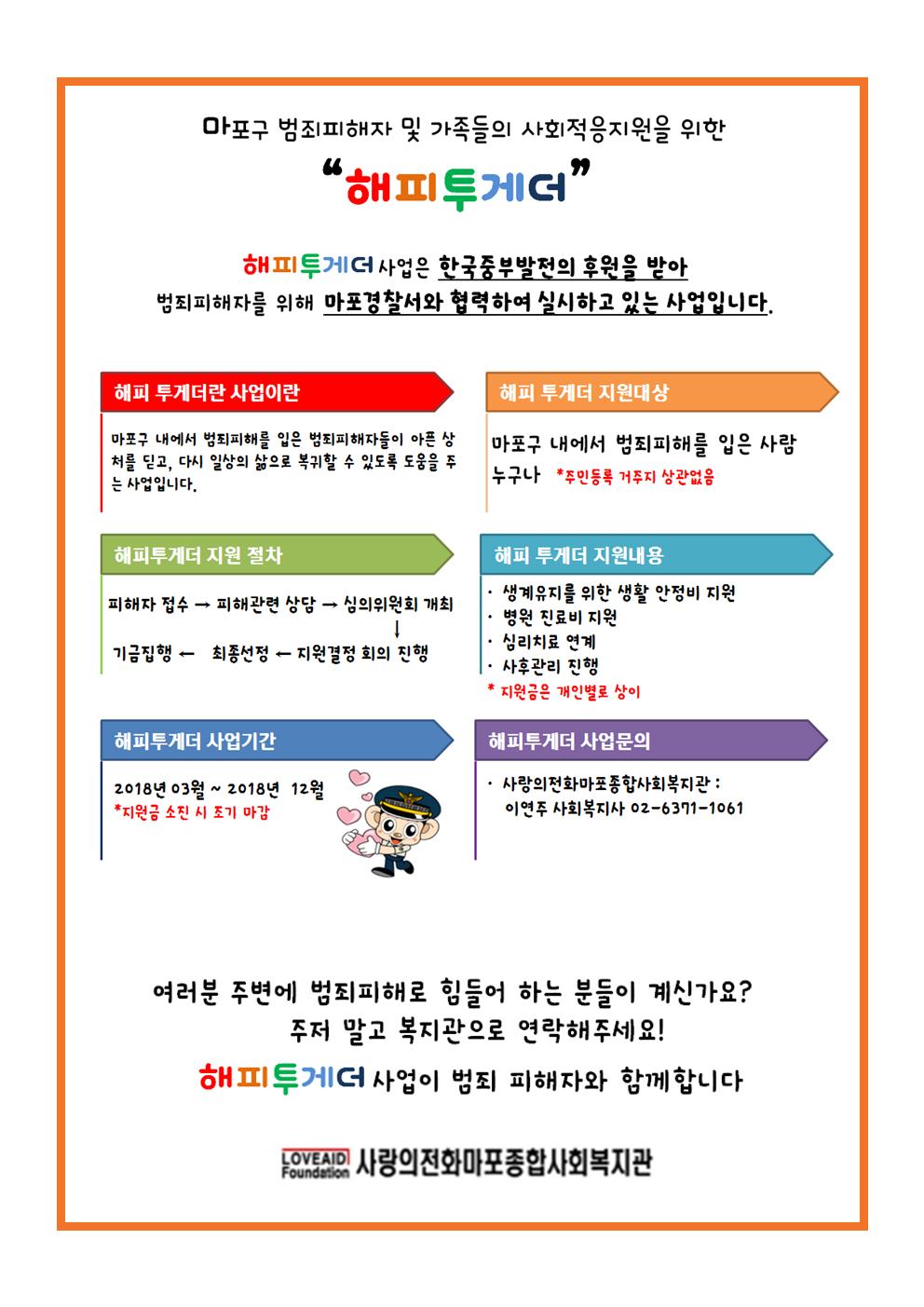 사랑의전화마포종합사회복지관에서는 범죄피해자를 위한 지원사업을 다음과 같이 진행하고 있습니다.