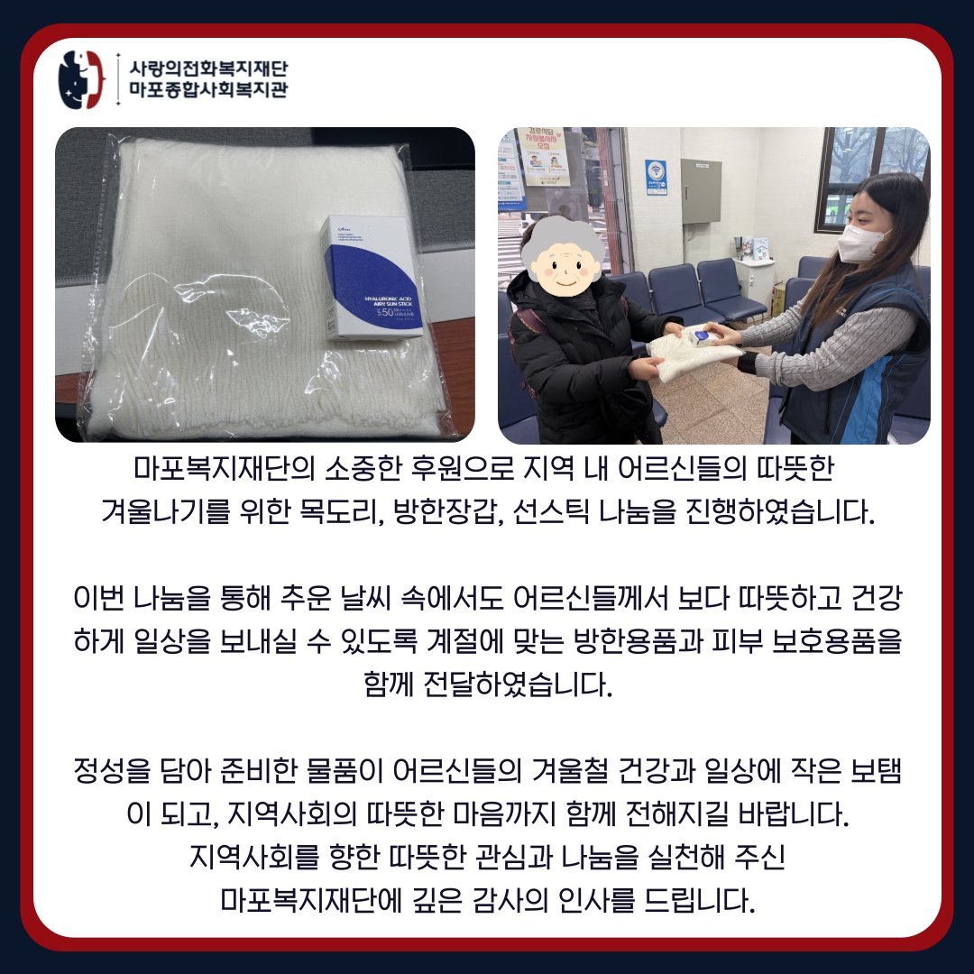 [지역동행팀]마포복지재단과 함께 온기를 전하는 따뜻한 방한용품 및 선스틱 나눔