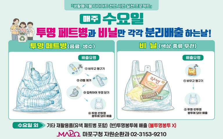 2. 매주 수요일은 투명 페트병과 비닐만 각각 분리배출 하는 날