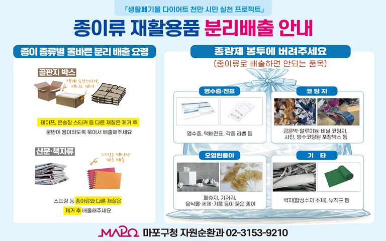생활폐기물 다이어트 프로젝트 재활용품 종류별 분리배출 안내(일회용품, 비닐류, 종이류)