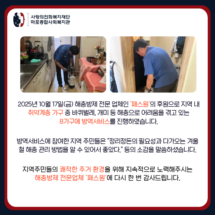 [통합돌봄팀] 10월 방역서비스 진행