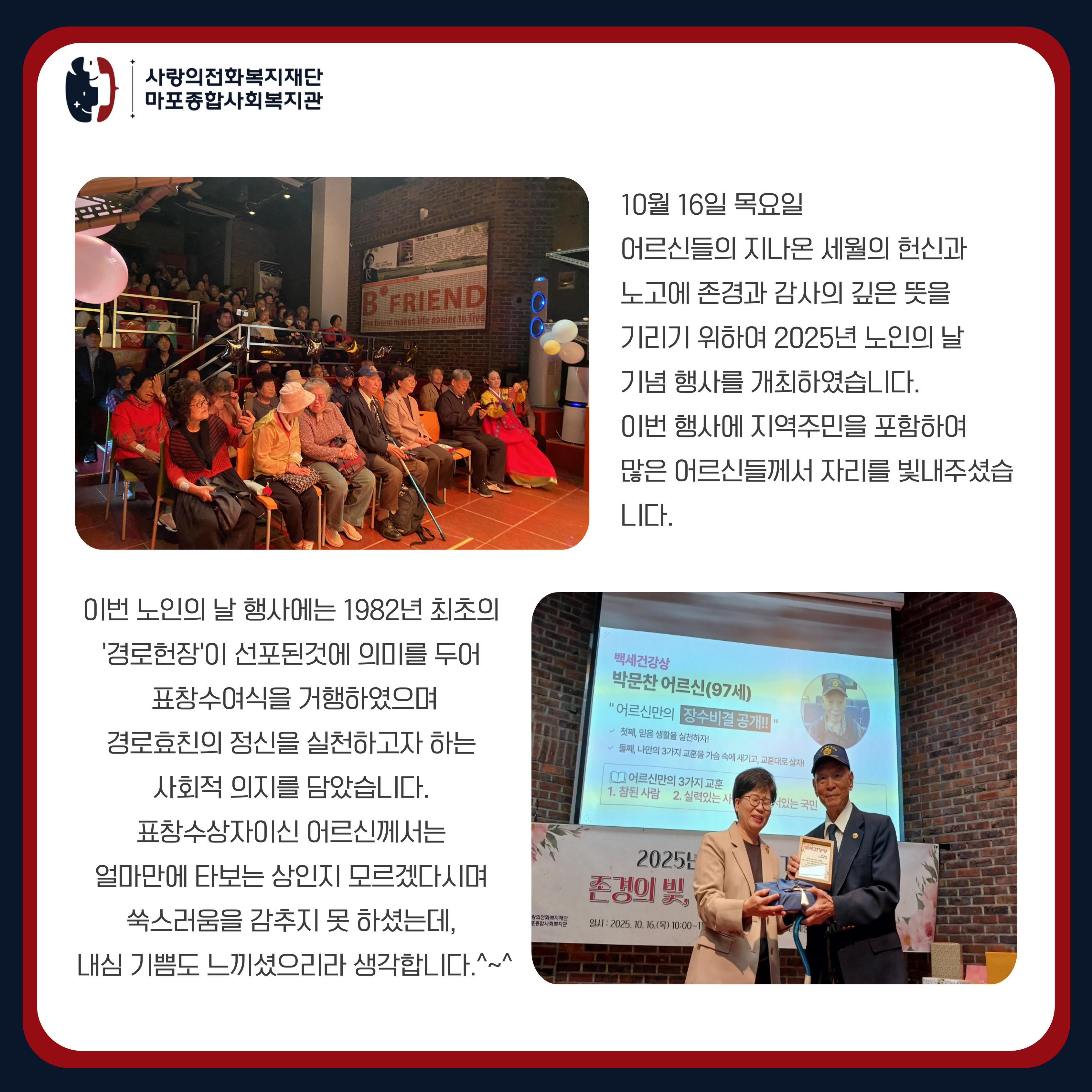[서비스지원팀] 문화의 달 3회기_노인의 날 기념 행사
