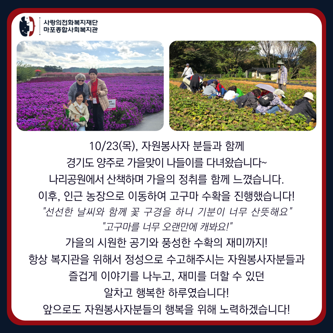 [지역동행팀] 자원봉사자 가을맞이 힐링 나들이 진행