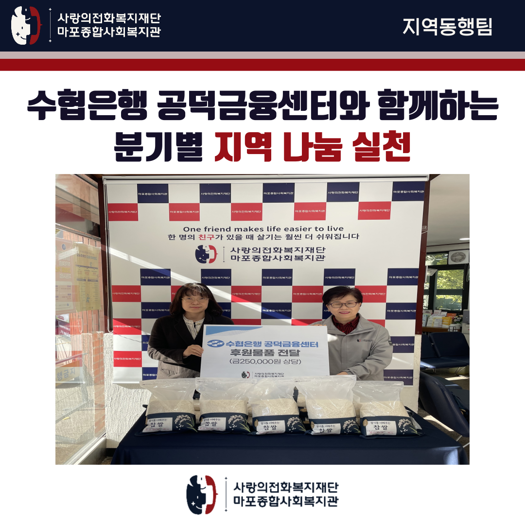 [지역동행팀]수협은행 공덕금융센터 분기별 지역 나눔 실천
