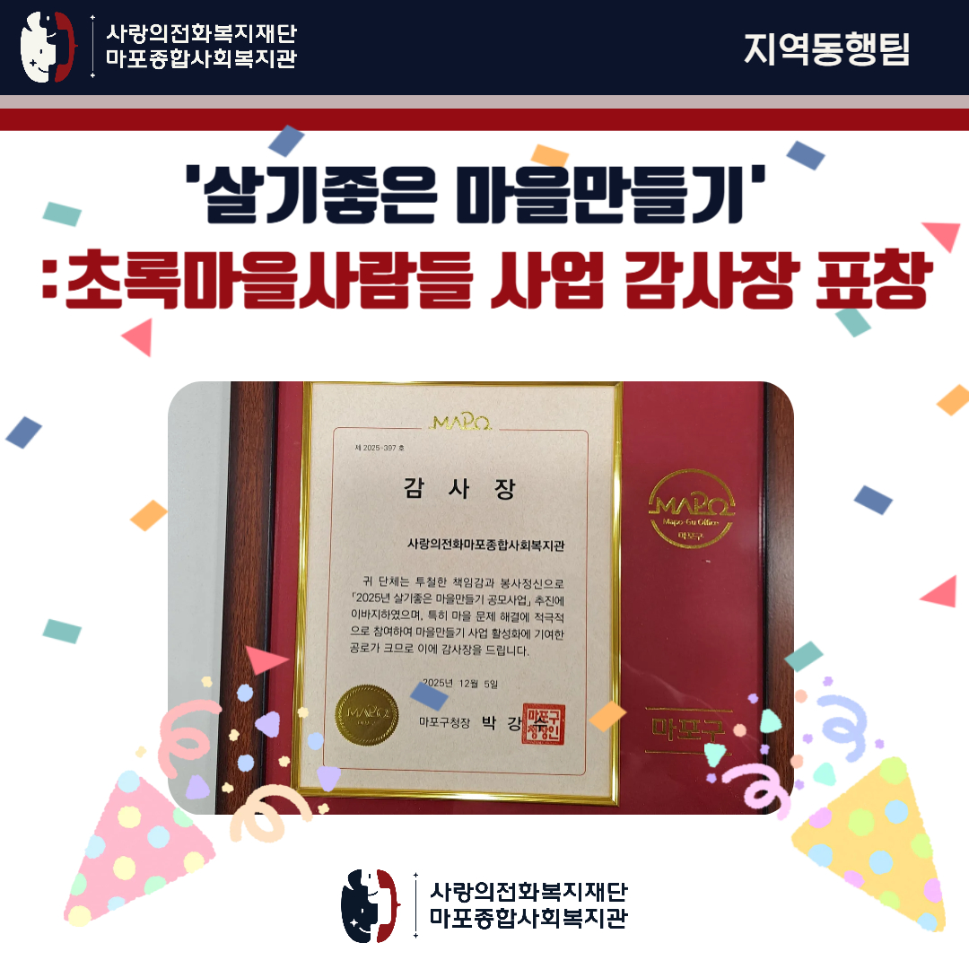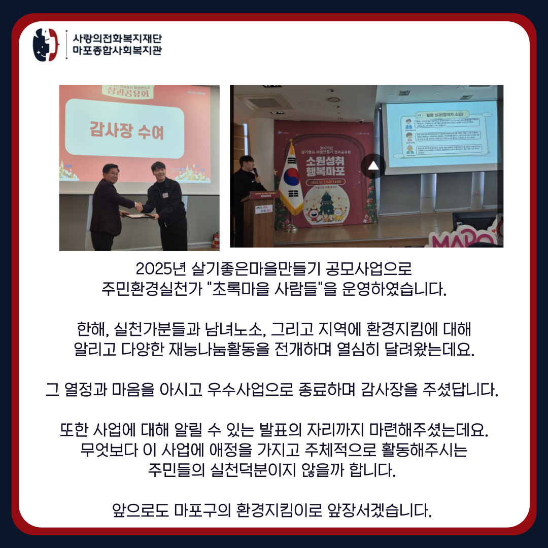 [지역동행팀]살기좋은마을만들기 초록마을사람들 우수사업종료, 감사장 표창