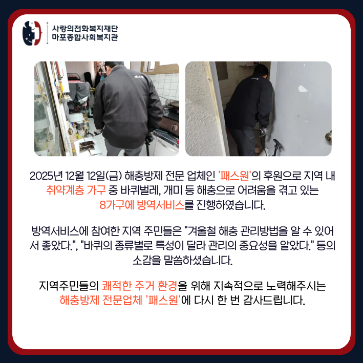 [통합돌봄팀] 12월 방역서비스 결과보고