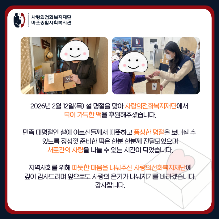 [통합돌봄팀] 사랑의전화복지재단 떡 후원 활동