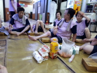 어르신들과 봉사자가 준비해온 간식과 복지관에서 준비한 시원한 음료수를 나눠먹으며