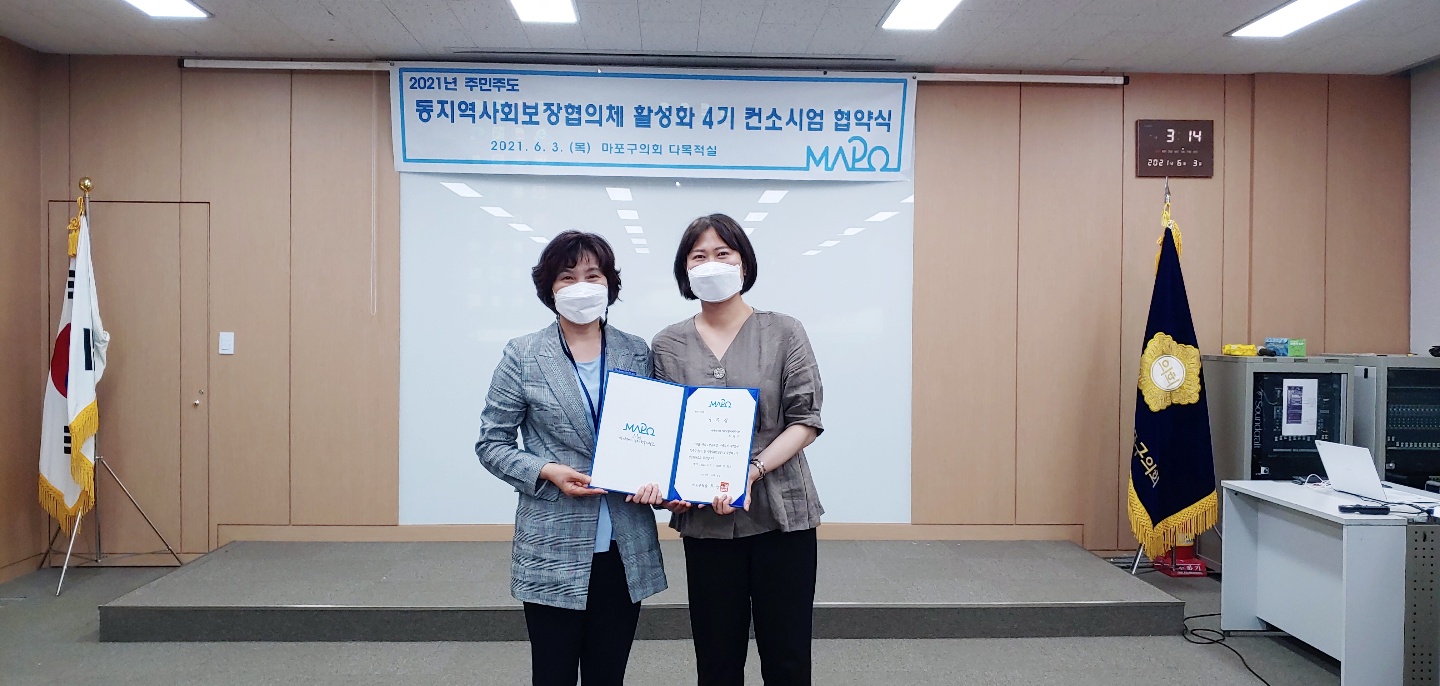 마포구 ‘주민주도 동지역사회보장협의체 활성화(동복지대학)’ 사업 제4기 컨소시엄 업무협약식 및 전문위원 위촉식이 지난 6월 3일(목) 마포구청 1층 강당에서 진행되었습니다.