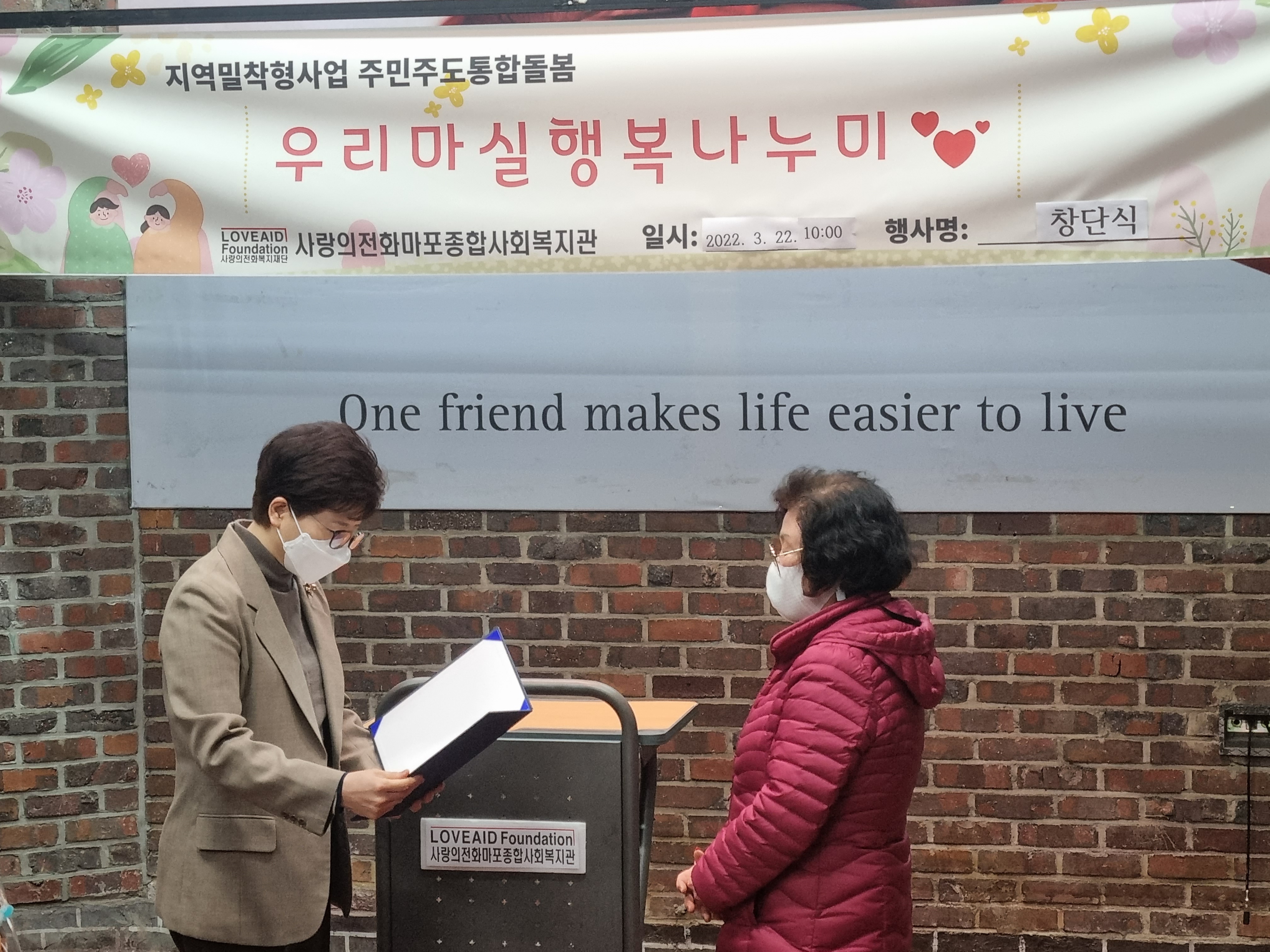 2022년 복지관 중점 사업으로 지역밀착형 주민주도 통합돌봄 "우리마실행복나누미" 창단식을 진행하였습니다