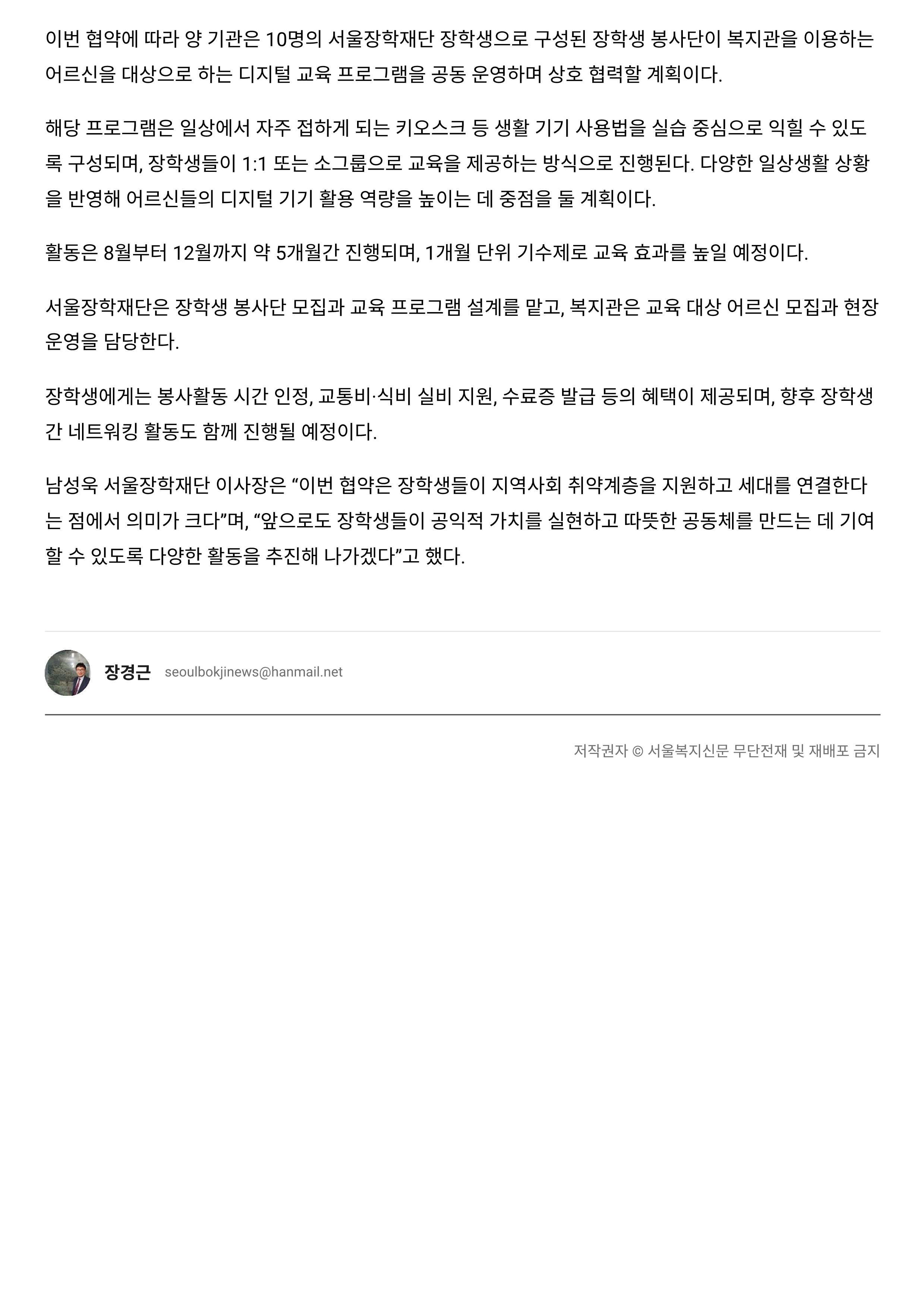 [서울복지신문-25.06.03.] 서울장학재단-사랑의전화마포종합사회복지관, '어르신 디지털 교육' 맞손