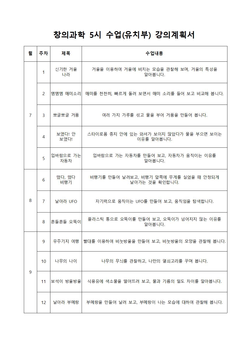 * 창의과학 수업은 수강생 연령에 맞춰 수업 내용 변경될 수 있습니다.